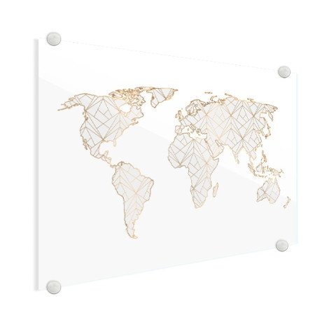 Laat de abstracte vormen en luxe uitstraling van de geometrische goud/lichtgrijze wereldkaart stralen aan de muur. De wereldkaart is zeer uniek en zal zeker niet vervelen bij jouw thuis aan de wand. Zoek dus niet verder en bestel vandaag nog deze waanzinnige wereldkaart.
